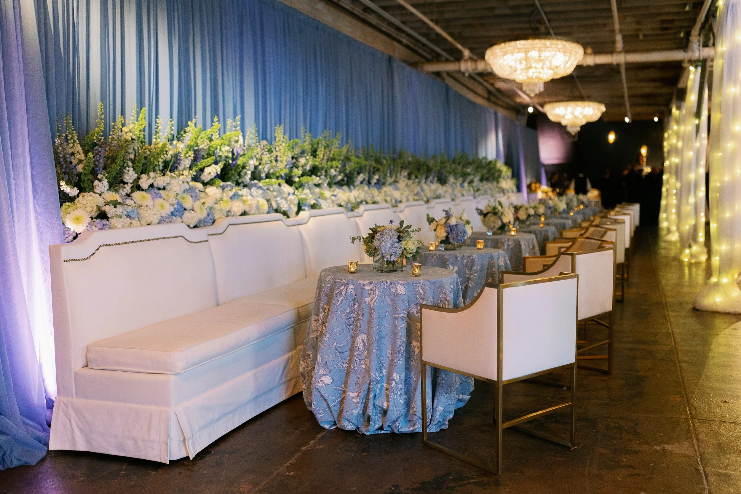 The Chandelier Room, Courtyard, and Garage Room each offer a distinct atmosphere — from romantic crystal chandeliers to open-air charm and industrial elegance — creating a versatile, unforgettable backdrop for weddings and gatherings of every kind.
